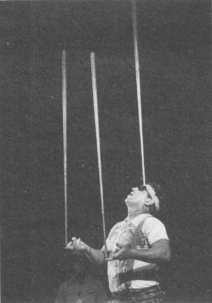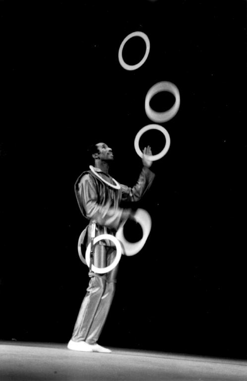 From his opening trick there was no doubt in the audience of Gatto's superior juggling ability. His appearance in handsome long pants and long-sleeved shirt instead of the shorts and sport shirt he used to wear conveyed a message of professionalism.